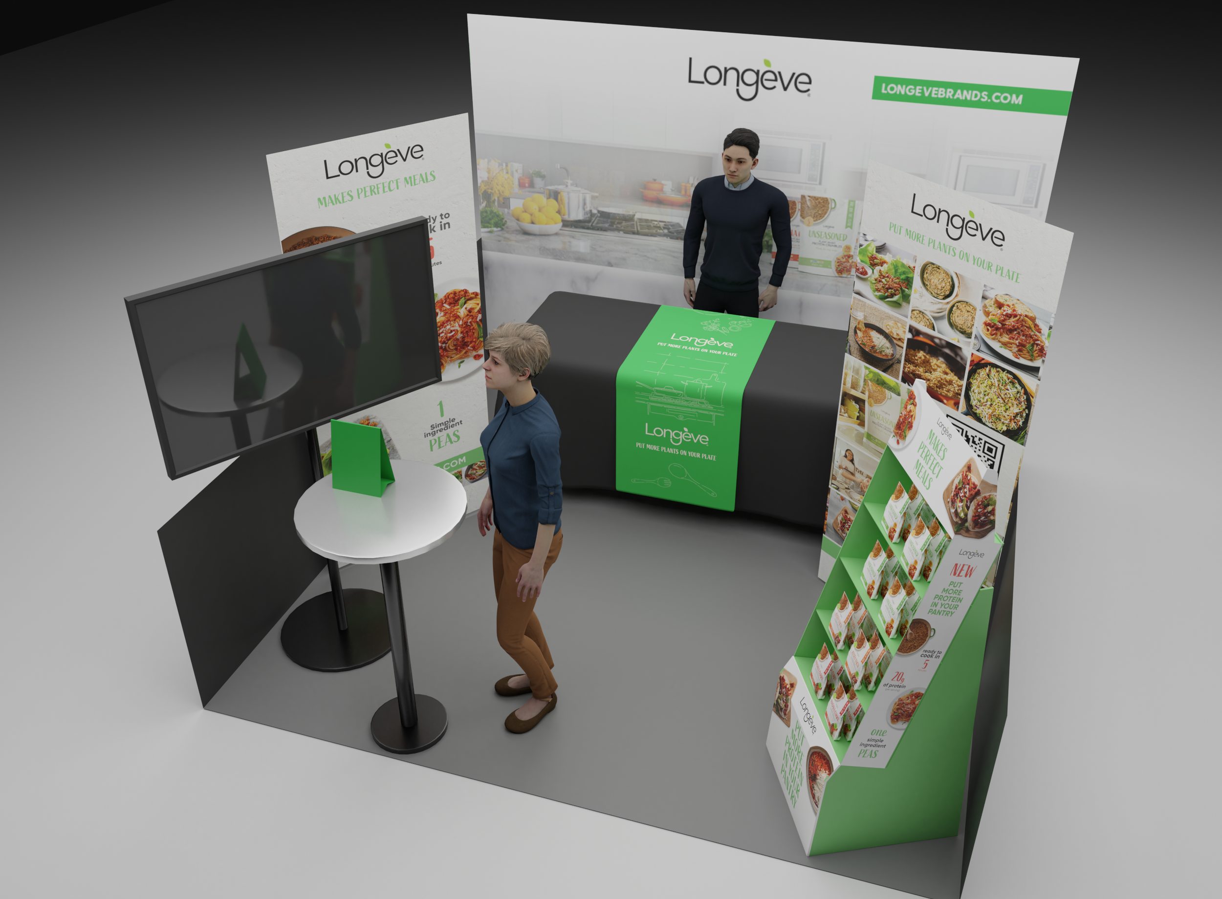 I was asked to create a render for a trade show booth for one our startups. This was for a restaurant show in Anaheim, CA at the Anaheim convention center. This is a “to scale” render to see how the POP displays, TV and tables will fit.